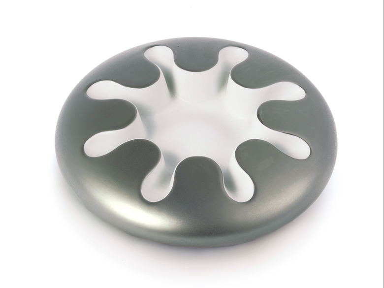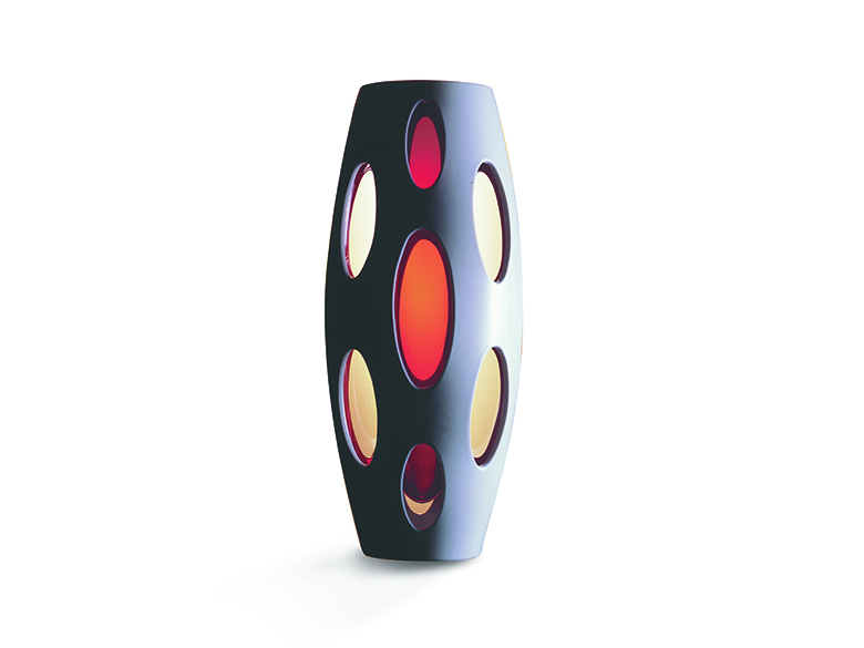 Markante geometrische Formen mit charakteristischen Durchbrüchen, hergestellt in traditioneller handwerklicher Manufaktur verleihen der Asteroide-Serie der Höchster Porzellan Manufaktur ihr unverwechselbares Erscheinungsbild. Es entstanden die Vase Oterma und die Schale Iota mit verschiedenfarbigen Einhängern und Einlegern aus Glas sowie die Aschenbecher Metis und Mithra, deren softe Rundungen das harte Porzellanmaterial geschickt kontrastieren.