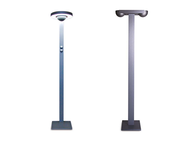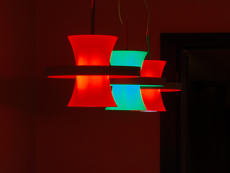 Massives Gussmetall bildet das optische Fundament dieser Leuchtenfamilie von Wand-, Pendel- und Stehleuchten. Die für ihren innovativen Farbwechsel preisgekrönte Serie vereint die Vorteile indirekter Raumbeleuchtung mit direktem, gerichteten Arbeitslicht. Der Einsatz von Farbfiltern und die stufenlos dimmbaren Leuchtstoff- und Halogeneinheiten ermöglicht die exakte Anpassung der Lichtstimmung an die Raumsituation.