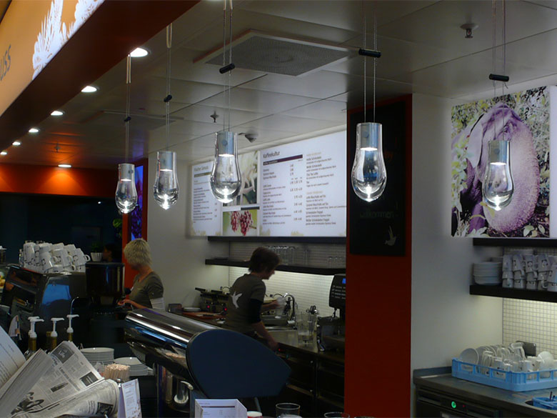 Als reduzierte Wohn- und Objektleuchte besteht Drop aus einem Glastropfen, der das Licht wie eine Linse fokussiert. Die stufenlose Höhenverstellung lässt sich werkzeuglos regulieren. In Reihung eignet sich die Leuchte für Tresen und Empfangsbereiche.