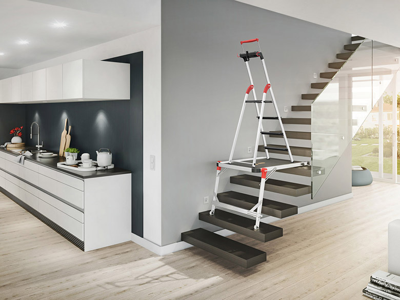 Seit mehr als 20 Jahren betreut das Designbüro alle Neuentwicklungen der Firma Hailo im Bereich Steigen. Leichte Konstruktion bei hohen Belastbarkeiten, selbstverständliche Handhabung und ergonomische Konsequenz in allen Details zeichnen die von HF-Design für Hailo entwickelten Haushaltsleitern aus. Präzise Stufenführungen, Anti-Rutsch-Profilierungen und zusätzliche Sicherheitsausstattungen wie erweiterbare Griffschalen und Sicherheitsbügel sorgen für höchsten Nutzungskomfort.